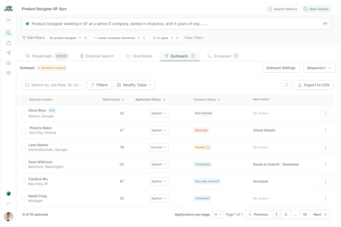 NinjaHire is an AI powered recruiting platform designed to automate and streamline talent acquisition processes for staffing agencies and recruitment firms. Autonomous artificial intelligence agents operate continuously to source, engage, and screen candidates across multiple channels and databases. The platform provides access to a database of over two point four billion global candidate profiles that is engineered for staffing agencies, managed service providers and recruitment teams seeking to scale operations while reducing manual workload. The system targets organizations that handle high volume recruiting requirements and require accelerated time to hire while maintaining candidate quality standards.