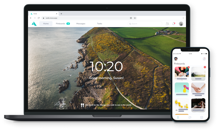 With nooa's web and mobile application, employees communicate wherever it suits the working style, whether they are on the road or in an office environment. Users exchange secure private messages and manage job orders by creating and sharing tasks. On pinboards, managers can share files with the team and communicate in a structured many-to-many format.
