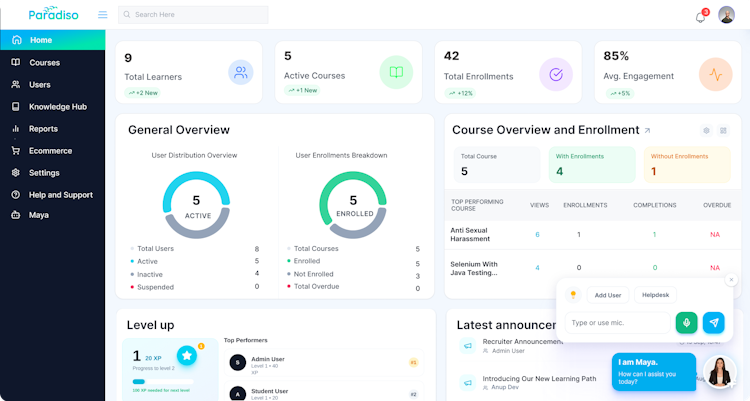 Built with a highly modular and customizable architecture, Paradiso LMS allows enterprises to tailor the platform to their specific training requirements, branding, workflows, and user experiences. From employee training and compliance to partner enablement and customer education, Paradiso LMS provides a flexible and scalable foundation for enterprise learning.