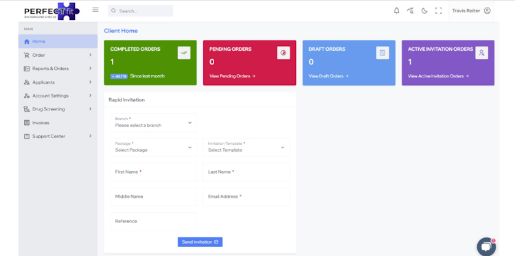 Users can log into their customer portal to place a manual order directly from their inbox or provide the candidate's name and email to initiate an order invitation to the candidate.