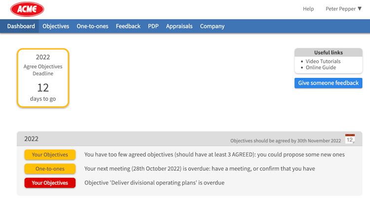 Customisable online employee performance reviews