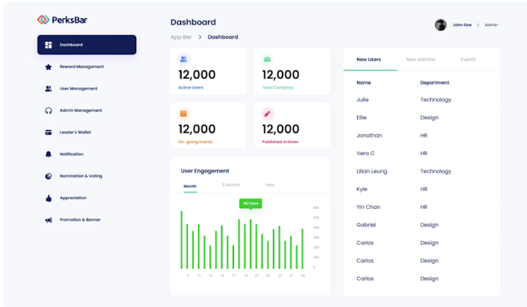 •Operational Efficiency for HR and Leadership: PerksBar automates internal communications, employee surveys, events management, and provides real-time data analytics to optimize HR decision-making and organizational performance.