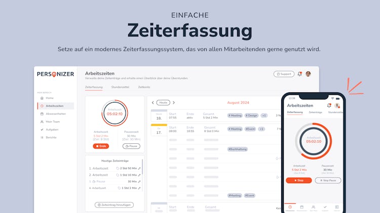 Personizer's software solutions make it easier for small and medium-sized companies to record working hours in compliance with the law, manage absences efficiently and store all personnel data securely and centrally. Personizer promotes transparent HR processes and helps teams to organize themselves independently.