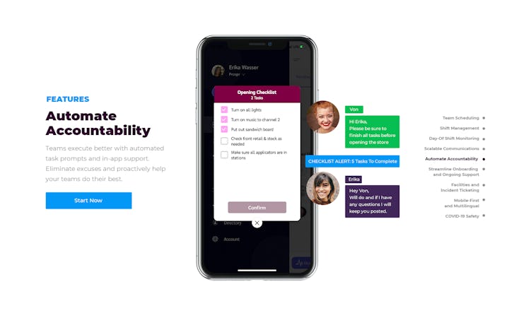• Hold team members accountable with checklists, read receipts, e-sign & more.