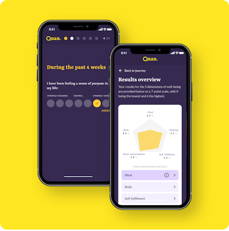Quan exists to demystify the world of well-being for both managers and teams by breaking down the science, increasing self-awareness and guiding them through steps designed to improve well-being in quantified ways.