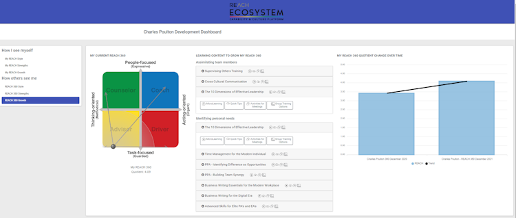 REACH 360's are a distinctly different approach to 360's where users can add positive, fast, motivational, valid questions using question banks or create their own. It has a simple admin, quick to complete with debriefing guidelines and presentations included.