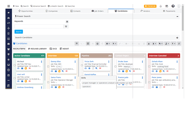 RecruitBPM is a recruitment management software designed to help small to mid-sized hiring agencies streamline the recruiting process with a range of online tools including applicant tracking, social recruiting, a career portal, background screening, interview management, reports, and more. RecruitBPM is mobile-optimized, giving users the flexibility to access and manage contacts, job orders and candidates on the go via mobile devices.