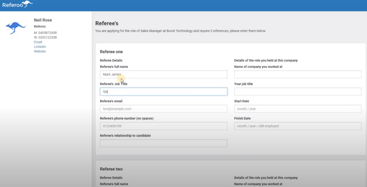 Referoo is a reference tracking software that helps businesses establish contact with referees and create evaluation surveys to capture candidate information according to job requirements. It allows users to build referee profiles with details, such as job title, email, phone number, relationship with the candidate, and more.