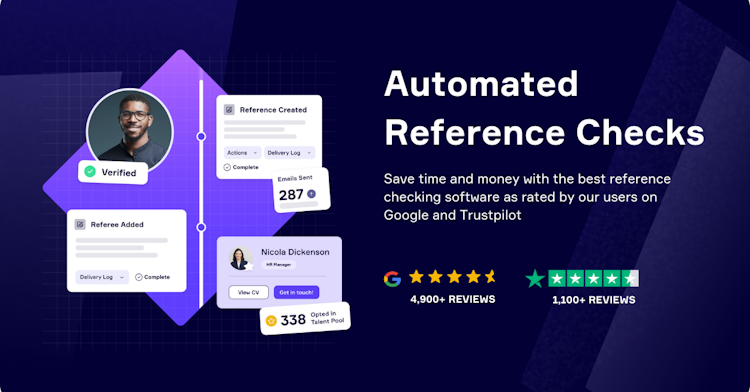 Export PDF Reference reports to your HR System<br/>References completed in 36 hours on average<br/>