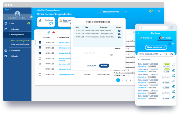 The system improves HR management by making each process simple through automated remuneration (individual or mass) and digital signatures for all pending documents. Rex+ allows entity administrators to approve or deny leave requests, respond to settlement claims, and track employee performance. The platform structures workflows to evade redundant tasks and provide automatic reports. Additionally, it aims at streamlining human resources processes and speeding up interactions.