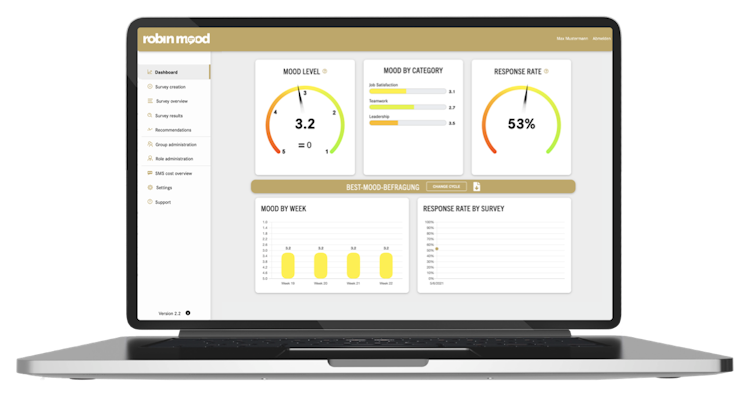 With the help of a combination of different surveys over the entire employee life cycle, robin mood succeeds in involving employees and thus generating a mood picture for managers at the click of a button.