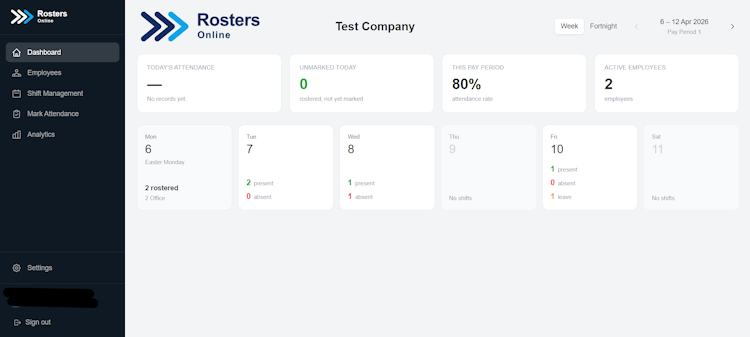 The platform’s rostering functionality enables administrators to establish recurring shift patterns that operate on weekly or fortnightly cycles. The system supports date specific overrides for single instance scheduling changes while preserving visibility across the complete pay period. The attendance management component records team member presence in real time and provides immediate visibility into absences and attendance discrepancies before they impact operational continuity.