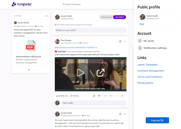 The platform works like a bulletin feed, whereby anyone within your organisation can ask a question, provide feedback or voice a concern at any time - with the protection of anonymity if they choose. This creates psychological safety and enables you to hear the unfiltered truth and understand what’s really going on within your organisation.