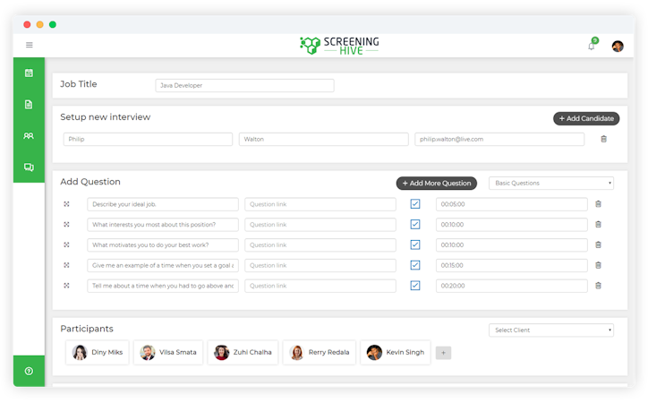 ScreeningHive is a one-way video interviewing platform built to help recruiters hire faster and smarter. It allows employers to create job-specific templates, add video or text questions, and invite multiple candidates to record responses at their convenience. The platform supports practice sessions, feedback tools, and secure encrypted recordings. With structured scoring and collaboration features, ScreeningHive ensures fair, consistent, and data-driven hiring decisions across teams.