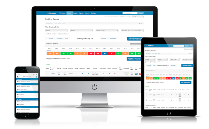 ShiftMatch can handle the requirements of different locations and shifts. It adapts to every single employee, ensuring personalized workforce management. It also offers real-time reporting, workload and governance tracking, auto-allocation tools, communication channels via Smartphone Apps or SMS, and a suite of industry-standard APIs to allow other third-party systems to connect, such as rostering, time & attendance, payroll data warehousing, or staffing agency allocation systems.