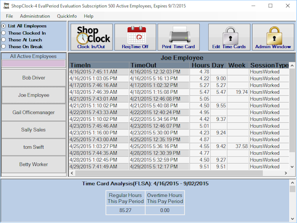 ShopClock is a time clock software designed to help small businesses track employees' working hours and calculate overtime. Administrators can set custom rules for different employees and print timesheets in real-time.
