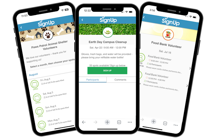 SignUp is the easiest way to recruit and manage volunteers for your church, club, family, neighborhood, nonprofit organization, school, team, or other group's events. Save time and boost participation in coordinating the people and things that help you make a difference in your communities with simple setup, user-friendly scheduling (no participant registration required), automated reminders, and more.