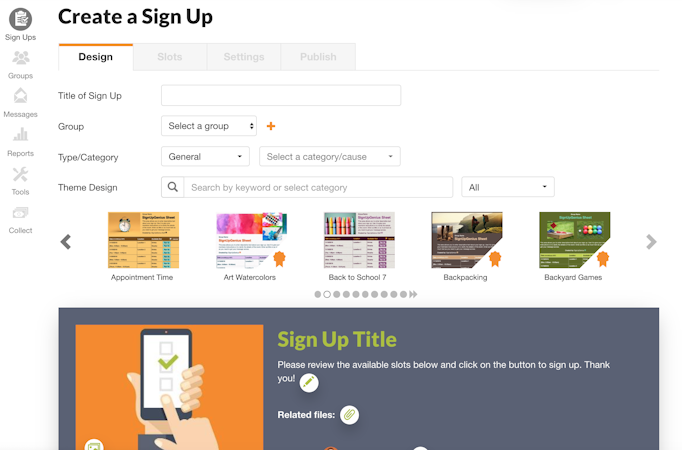SignUpGenius is a cloud-based solution for volunteer management and event planning tool for creating online sign up forms. Create and customize sign ups for organizing registrations, volunteers or events. Invite an audience via email and social media to sign up online. Packed with custom features such as customized reminders, additional administrators and sign up locking. You can even collect money for fees or payments on the sign up. Our highly flexible tool is perfect for businesses, nonprofits, schools, colleges, faith groups, sports clubs and other organizations. SignUpGenius includes a sign up sheet builder and a range of professionally designed sign up theme designs. Users can add their own logos and images, as well as design their own themes. They can also choose flexible page formats for RSVP, date-specific and non-date-specific sign ups, and define which fields are required for participants to sign up. Sign up creators can invite participants and provides a unique URL for each sign up sheet. Sign ups can even be arranged into selectable tabs or a landing page housing all of an organization's sign ups. Send email invites directly through SignUpGenius or through your own email application or share on social media. Additionally, invite emails can be scheduled to be sent on a particular day or time, and delivery reports show users which emails have been sent, which have been opened and which recipients have clicked through to the sign up page. Participants can fill in the sign up forms from any device, without requiring an account, and are automatically sent SMS and email reminders. Sign up admins can view volunteer hours reports, edit schedules or swap time slots, and print physical sign up lists to take to events.