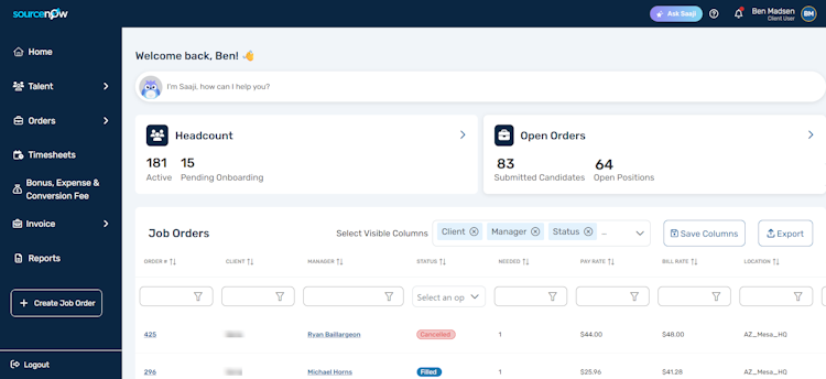 SourceNow VMS is a cloud-based, mobile-first platform that simplifies contingent workforce and temporary workforce supplier management at scale. It powers Sage AI—the first intelligent agent built into a VMS—delivering real-time insights, automation, and continuous learning to identify trends, savings, and compliance risks.
