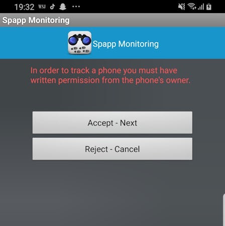 Spapp Monitoring - Phone Tracker is a surveillance tool that helps businesses and parents track employee and children's activities using an Android application. Users can track Whatsapp incoming and outgoing messages and calls, access the phone's microphone and camera in real time and browse folders or download files from the phone according to requirements.