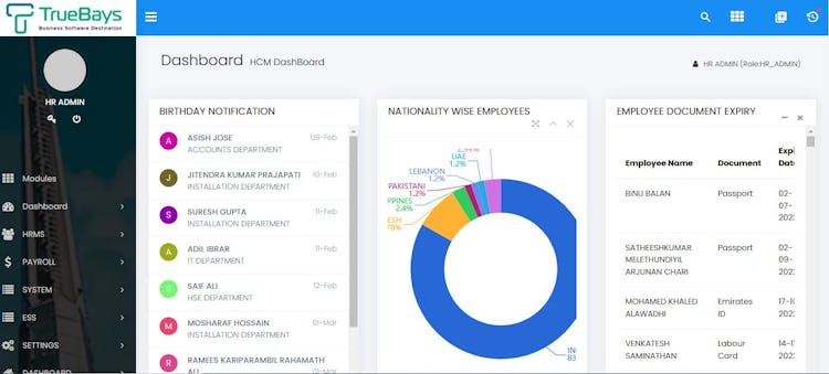 TrueBays StackHX is a cloud-based human resource management system and payroll solution tailored to businesses operating within the United Arab Emirates. The platform accommodates organizations employing as few as ten staff members to enterprises overseeing ten thousand employees across sectors including trading, manufacturing, contracting, distribution, retail, restaurants, healthcare and hospitality. The system unifies core workforce management functions such as payroll processing, attendance tracking, benefits administration, compliance management and employee lifecycle management within a secure dashboard. The solution addresses local labor regulations by automating calculations for end-of-service entitlements and generating files compatible with the national wage protection framework.