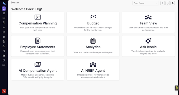 The platform includes several integrated modules that address distinct compensation management requirements. The budgets AI module supports one hundred eighty currencies and real-time foreign exchange rate conversion to manage global compensation pools across multiple regions. The compensation planning module governs the annual merit cycle workflow, encompassing salary increase calculations, budget allocation tracking, manager approval workflows and policy compliance verification. The system generates AI-driven recommendations that account for internal equity considerations, salary band positioning and budget constraints. The pay equity module performs automated analyses to identify and flag compensation disparities by comparing team medians and band midpoints. The employee statements module enables the creation and distribution of total rewards statements. The Ask Iconic agent responds to complex compensation queries, generates job offer packages with market data verification and market percentile analysis, and models budget scenarios. Offer generation features internal equity checks, equity grant calculations with vesting schedules and support for multiple compensation elements including base salary, restricted stock units, stock options, target bonuses and incentive plans in a single interface.