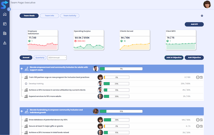 StratSimple is an AI-driven strategic planning software hub designed for teams in nonprofits and small to mid-sized companies. The platform serves as a guided playbook to build consensus around strategic priorities, create flexible plans to execute on those priorities, and promote transparency and accountability for results.
