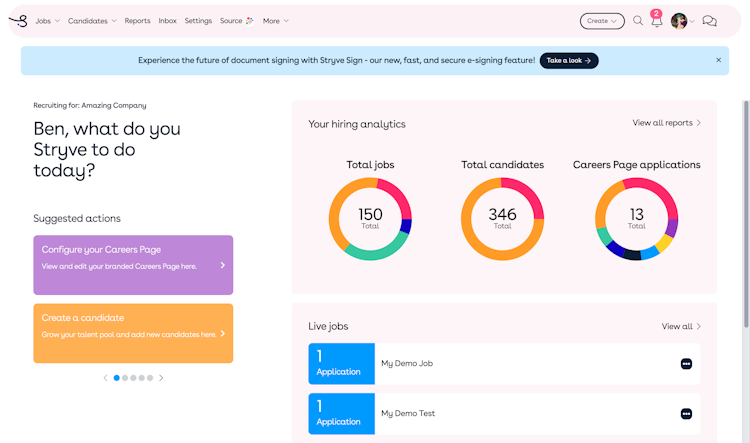 Stryve is your one-stop-hiring shop. One system to manage CVs, candidate profiles, interview notes, financial information, analytics, reporting, and more - the list goes on.