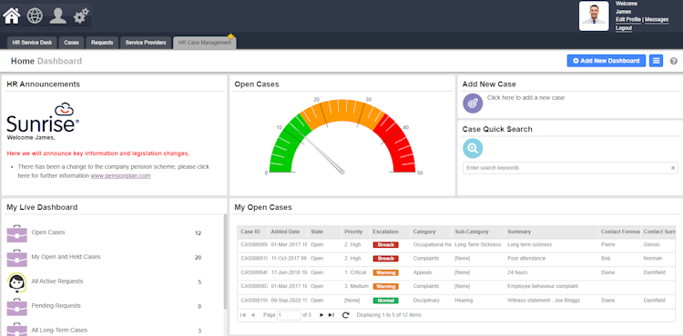Sunrise HRCM is a comprehensive HR case management software solution that empowers HR teams to efficiently manage all employee interactions and automate crucial HR processes. The centralized platform provides a detailed audit trail, full visibility of HR data, and improved employee relations, ensuring a consistent level of service to the organization.