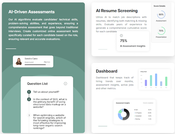 Talentick is an intelligent recruitment platform built for tech-savvy teams looking to automate and enhance the hiring lifecycle. Designed with scalability in mind, Talentick features AI-powered assessment engines that generate skill-based tests tailored to specific job roles. Its resume screening module uses natural language processing (NLP) to match candidate profiles with job descriptions, ranking applicants based on core skill match, experience, and qualifications.