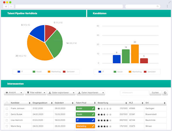 Talention interfaces with many HR software and ERP software providers and can thus be set up alongside the existing recruiting process.