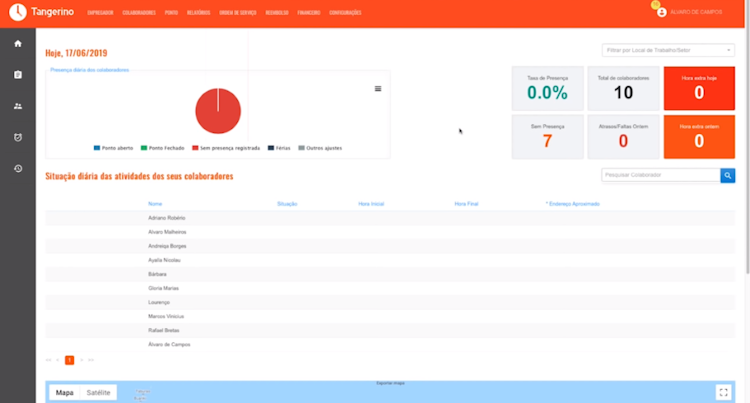 Tangerino is a solution for digital time control that uses facial recognition and geolocation mechanisms to ensure the integrity of the records made by employees, as well as safely storing the data in the cloud where it is protected by encryption. Available for mobile access, including Android and iOS devices, Tangerino enables companies to define whether their employees can clock in using their own cell phones, whether or not biometrics will be allowed, and if overtime histories should remain visible to employees. Other software features include timesheet exports, vacation management, route monitoring, absence and tardiness reports, and time bank control. Available in Portuguese for the Brazilian market.