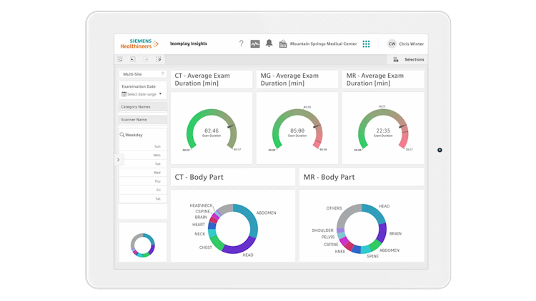 Siemens Healthineers' teamplay Insights provides a digital solution for improving the workflow, resource utilization, and quality of patient care in radiology departments. With an interactive dashboard, customizable analytics, and performance trackers, radiology departments can optimize their operations and make data-driven decisions to shorten wait times and reduce exam durations. The platform enables users to get broad access to operations data, conveniently build metrics and graphs, and share tailored communications with management. Additionally, it also helps improve resource utilization and delivers standardized care with teamplay Insights.