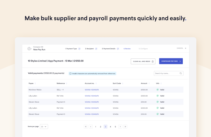 Telleroo offers an automated bulk payments hub for daily operations. The solution allows users to sync their payroll payments and supplier payments from Xero, Employment Hero, SafeHR, Staffology (and more!) and upload a .csv from Sage, Quickbooks, Brightpay and more to send payments in seconds. Users can give their teammates permission to create, review and approve payments, stopping the CEO bottleneck. Invoices to the same supplier can be grouped into one payment, allowing for quicker payments and easier reconciliation. Telleroo will alert users if bank details are updated or a new employee/supplier is added, giving an extra layer of protection. You can even scan bank details from invoices to de-risk payments to new suppliers! Use Telleroo to pay UK-based vendors and employees in GBP or to convert and send payments in USD, EUR, AUD, CAD and more! If you're a Xero user you can reconcile international payments without having to adjust the exchange rate. You can rest easy knowing your data is protected to the highest level thanks to our ISO 27001:2013 Certification.