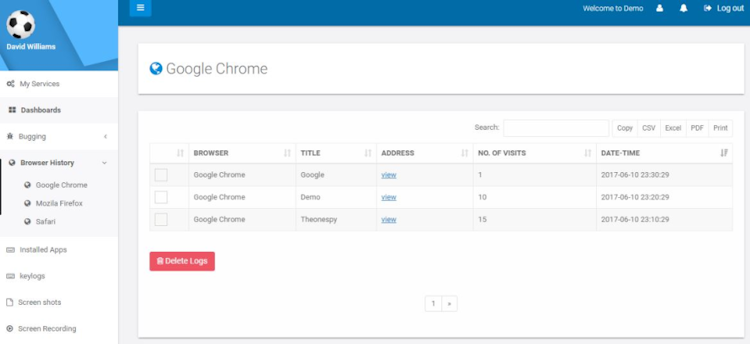 TheOneSpy features include the monitoring of call logs, SMS messages, browser history, keystrokes, calendars, social media access, plus more. Additionally, managers can use captured screenshots and live camera streaming features to monitor employees who work remotely. This solution can also be used to identify and prevent internal threats by allowing management to track inappropriate employee activities. Technical support for TheOneSpy is available via an online help center, live chat, and email.