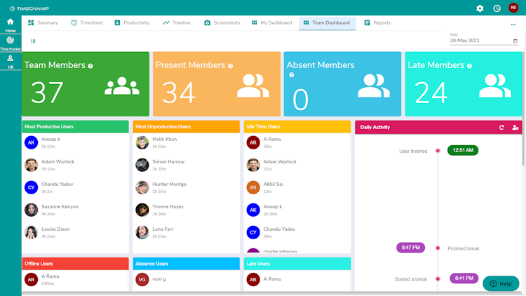 Time Champ helps companies unlock productivity potential by providing software with a vast array of features. Providing the ability for all employees, even those that are remote, to easily track the time they spend working on different projects.