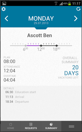 Time&Space is a cloud-based workforce management solution that helps enterprises record employee attendance using timeclocks. The centralized platform enables employees to track the status of absence requests, and review clocking details and vacation quotas on a graphical interface.