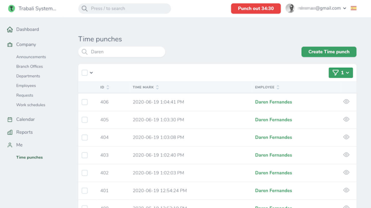 Trabali is a time clock and human resource management system (HRMS) designed to help businesses automatically track employees’ attendance, work shifts, and leave requests on a unified platform. Managers can use the application to assign work schedules to employees or departments, review and approve time-off requests, and define absence duration as per the organization’s policies.