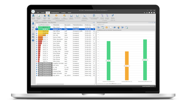 The training management software is an integrated system for the efficient administration of employee qualifications. It enables companies to systematically plan and meticulously document the qualifications of their employees. By creating different qualification profiles, specific documents can be assigned to ensure that employees have the necessary qualifications for their respective roles.