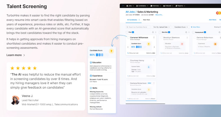 Turbohire providing a comprehensive solution for all the needs starting from raising Job requisition, conducting interview, profile tracking till providing feedback etc.