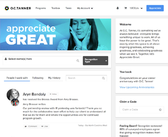 The Culture Cloud employee recognition platform from O.C. Tanner helps companies create thriving cultures that champion great work—because in order to become magnets for top talent, organizations must first shape cultures people want to engage with.