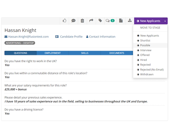 Webrecruit ATS’s user interface