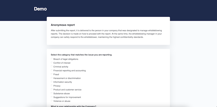 - Compliant with EU whistleblower laws and GDPR