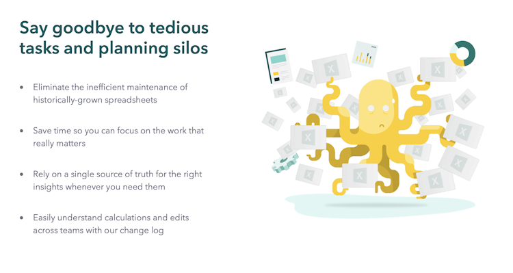 You also tremendously improve collaboration across your planning teams by replacing multiple files and spreadsheets with WePlan as your single source of truth. And you can always tailor the tool to your needs by adding more modules and defining your most important KPIs.