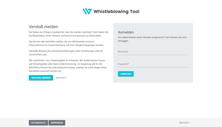 Whistleblowing Tool provides an online portal for employees, external consultants, public institutions, and more to report unlawful or unethical behavior in an organization. Key features include video conferencing, two-factor authentication, checklists, and case documentation.