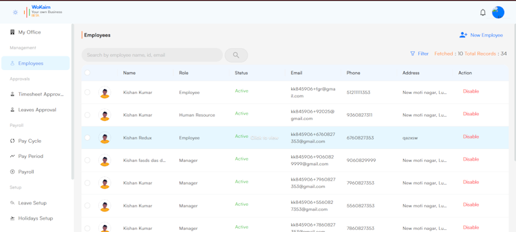Wokaim is a comprehensive workforce management system that integrates timesheet tracking, payroll processing, and employee management functionalities into a single platform. The software enables businesses to monitor employee clock-ins and clock-outs, track multiple timesheets based on availability, and implement a streamlined review process for submitted time records. The system automatically calculates salaries during each pay cycle, generates detailed payslips reflecting finalized compensation, and provides tools for easy reconciliation and adjustments when necessary.