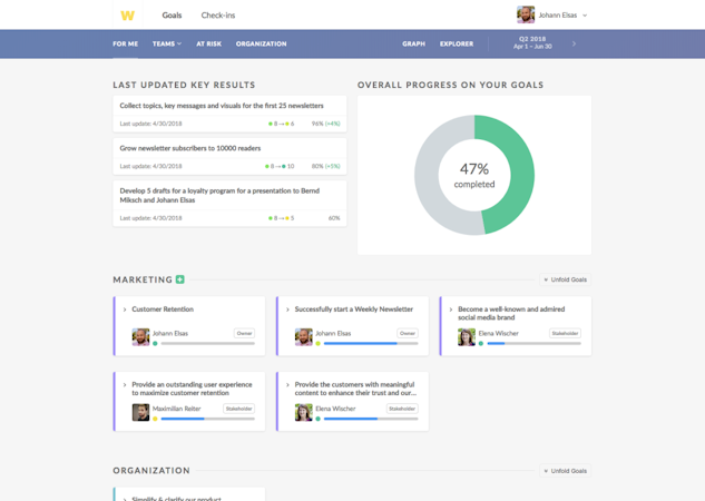 Workpath’s goal management tools enable users to create and define goals with measurable key results and align goals throughout their organization. Real-time tracking technology helps users update goals and track employee progress. Role management and assignment features allow users to organize responsibilities, while monitoring technology enables users to track and analyze overall team performance. Analysis tools help users understand where their teams stand as well as identify where support is needed.