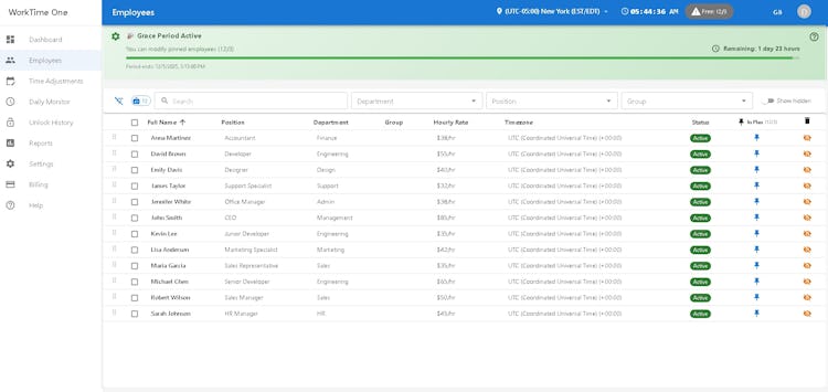 • Support global teams with WorkTime One's 20-language interface — available in English, Spanish, German, French, Italian, Portuguese, Polish, Dutch, Swedish, Norwegian, Ukrainian, Czech, Japanese, Korean, Turkish, Chinese, Arabic, Hindi, and Russian, with full RTL support for Arabic interfaces.