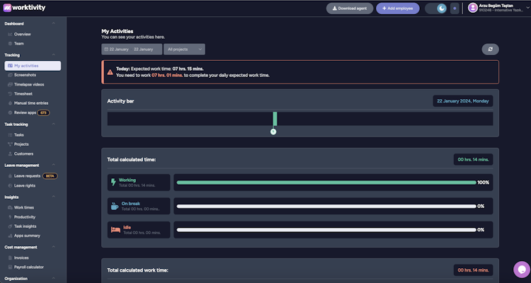 Worktivity’s user interface