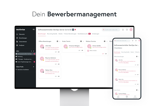 The individual and holistic recruiting solution from Workwise solves your recruiting challenges. With Workwise as a free applicant management system, you get access to all tools for a digital and successful recruiting.